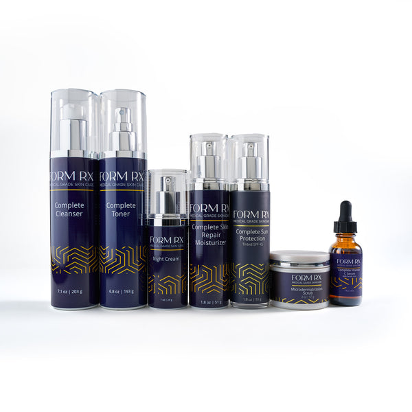 FormRx is a luxurious and advanced medical-grade skin care system. Unlike other systems, FormRx is a system that includes all components necessary for beautiful and radiant skin in one complete set. FormRx Cleanser, Toner, Vitamin-C Serum, Moisturizer, SPF, Night Cream, and Microdermabrasion are all custom compounded to work perfectly together to protect the skin and even reverse the signs of aging.